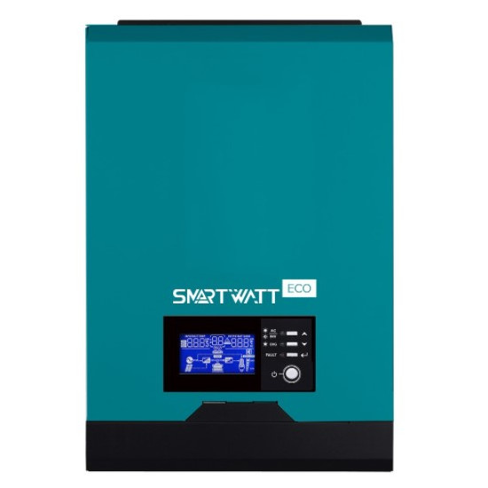 SmartWatt eco 1K 12V 50A PWM – инвертор представляет собой многофункциональный солнечный инвертор, сочетающий в себе функции инвертора, солнечного зарядного устройства и зарядного устройства аккумуляторов для обеспечения бесперебойного питания при компактных размерах. ЖК-дисплей предлагает настраиваемые пользователем функции кнопочного управления операциями и параметрами устройства, такие как ток заряда аккумулятора, приоритет источников питания зарядного устройства и допустимый диапазон входного напряжения для различных применений.