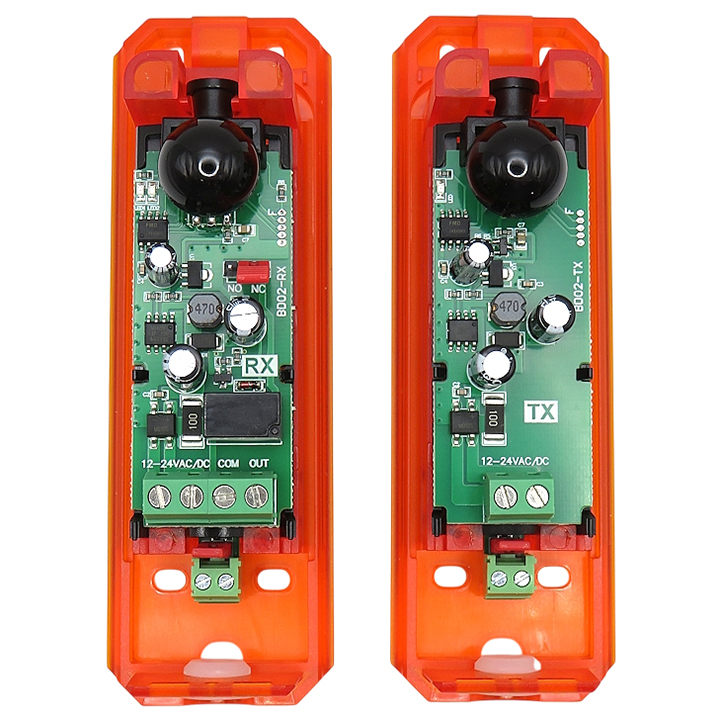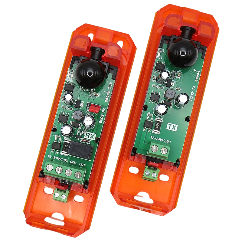 В случае пересечения инфракрасного луча, в блок управления поступает сигнал о появлении препятствия в опасной зоне действия автоматической системы, и система осуществляет действие, соответствующее установленной логике работы - остановка или реверс полотна ворот/шлагбаума.