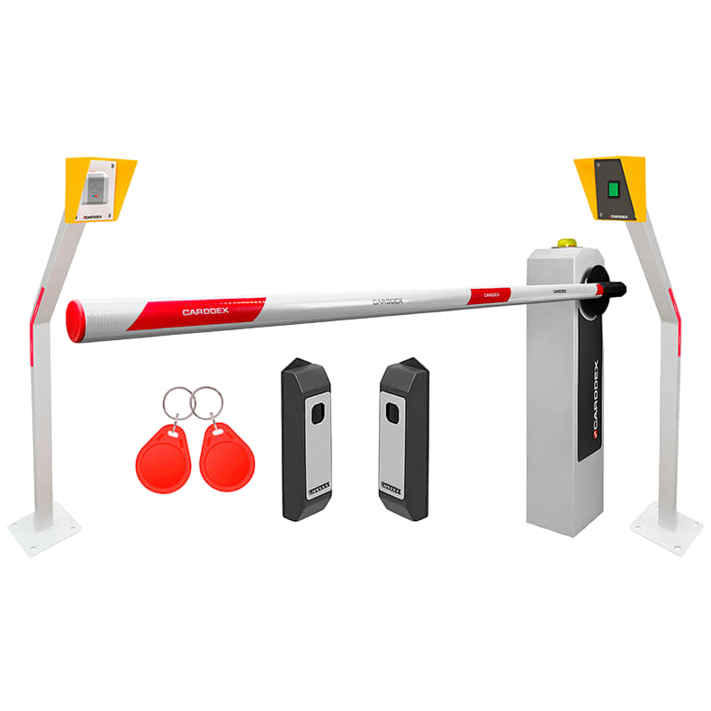 Въезд осуществляется по RFID-идентификаторам через автономный контроллер, выезд - по кнопке. Комплект датчиков безопасности обеспечивает безопасный проезд транспортного средства.