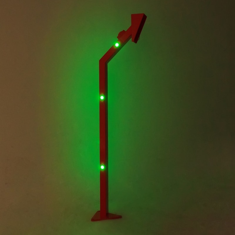 Стойка представляет собой Г-образную конструкцию с шестью световыми элементами, которые управляются с помощью контроллера и датчика освещенности (фотоэлемент).