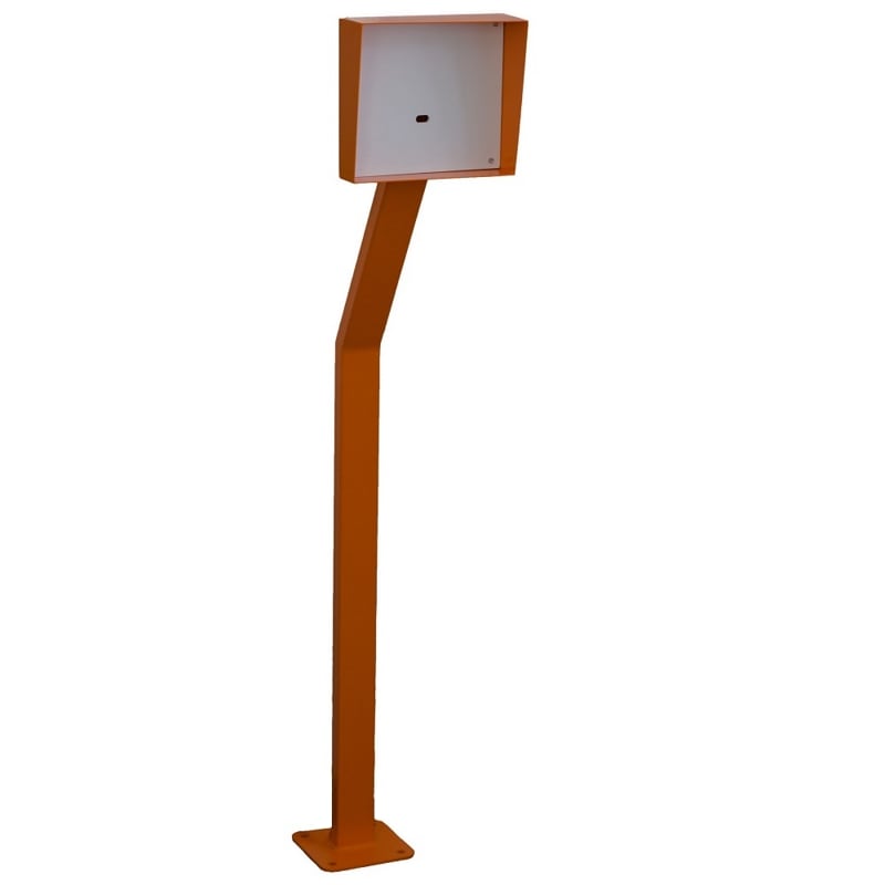 Стойка имеет цинковое гальванопокрытие (гальванический способ), которое обеспечивает наибольшие защитные свойства по сравнению с покрытием просто цинковым грунтом. Представляет собой трубу с коробом, в котором расположен датчик считывающего устройства.