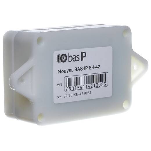 Bas-IP SH-42 (8-pins) – модуль управления для подключения двух замков и управления ими с внутреннего монитора. Подключение модуля к вызывной панели производится посредством 485 интерфейса между модулем и вызывной панелью. Работает со всеми панелями за исключением AV-02.