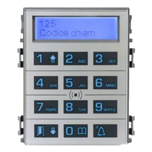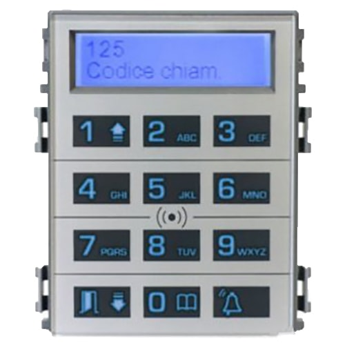 Устанавливается на вызывную панель (занимает место 4 стандартных кнопок) и позволяет осуществлять поиск пользователя в списке абонентов и контролировать доступ посредством цифрового кода или бесконтактного ключа. Список абонентов может содержать до 1250 имен.