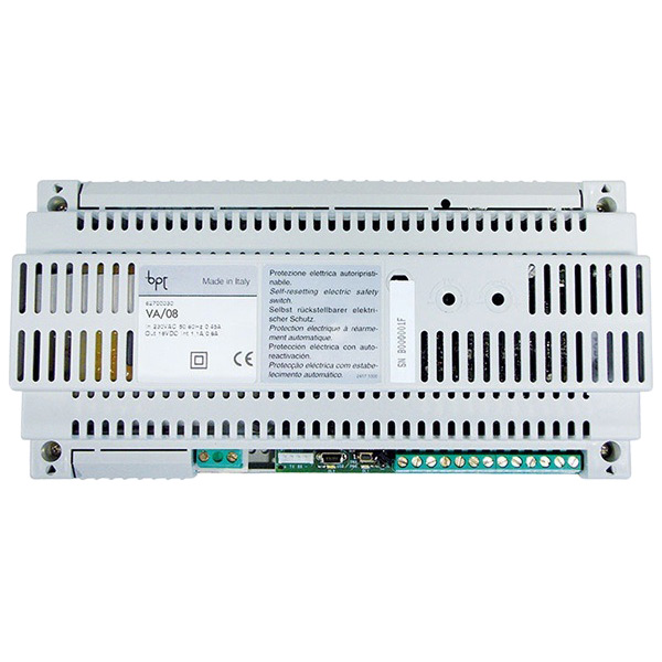 VA/08 – контроллер используется в системе XiP для подключения 4 вызывных панелей типа Thangram DVC/08, MTM/08 и Digitha DDVC/08.