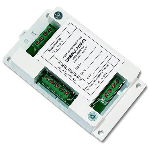 АВМ-03 – адаптер для подключения индивидуального квартирного 4-проводного видеодомофона (COMMAX или полностью совместимого с ним) к общеподъездным домофонам марок CYFRAL (за исключением М-10М и М-20М, выпущенных до 01.10.2012 г.), Vizit, Метаком, Eltis, с сохранением всех стандартных функций видеомонитора как с общеподъездной, так и с индивидуальной (квартирной, этажной) панели вызова.