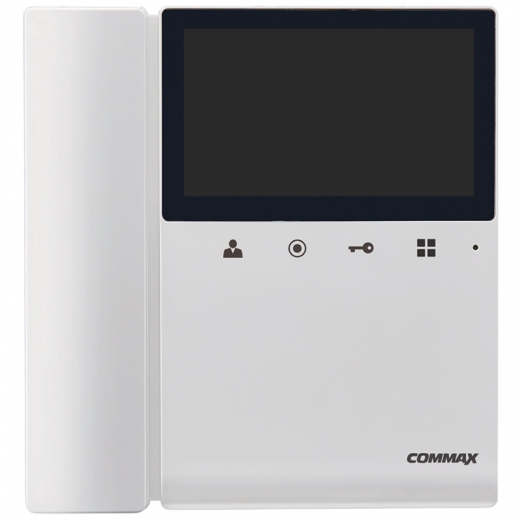 CDV-43K – видеодомофон с диагональю экрана 4.3 дюйма, подключение 1-ой вызывной панели. Исполнение с трубкой, сенсорные кнопки.