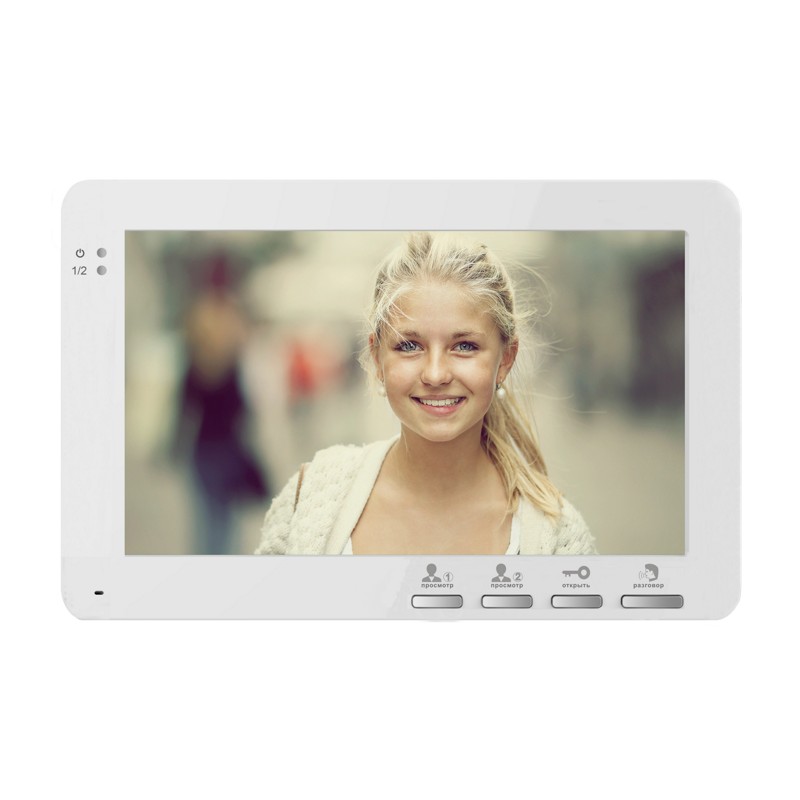 VDP71 – видеодомофон с диагональю экрана 7 дюймов и поддержкой 2-х вызывных панелей. Исполнение без трубки, механические кнопки.