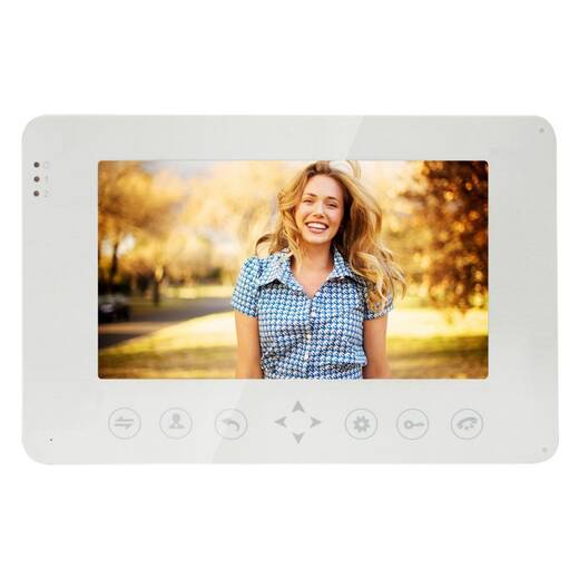 VDP71M – видеодомофон с диагональю экрана 7 дюймов и поддержкой 2-х вызывных панелей и 2 камер. Исполнение без трубки, сенсорные кнопки.