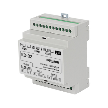KD-02 – коммутатор для одновременной работы 2-х многоабонентских домофонов DKSxxxx в одном подъезде (в одной координатно-матричной линии связи).