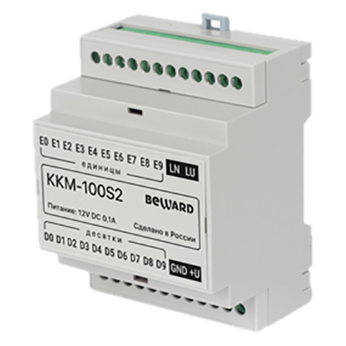 KKM-100S2 – коммутатор соединяет координатно-матричную трубку вызываемой квартиры с домофоном DKSxxxx. Кроме этого, коммутатор передает от абонента команду на открывание дверного замка.
