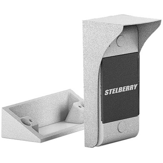 Stelberry S-105 – вызывная абонентская панель с защитным козырьком для работы в составе переговорных устройств серии S-400 и S-500 в качестве вызывного абонентского устройства громкоговорящей связи.