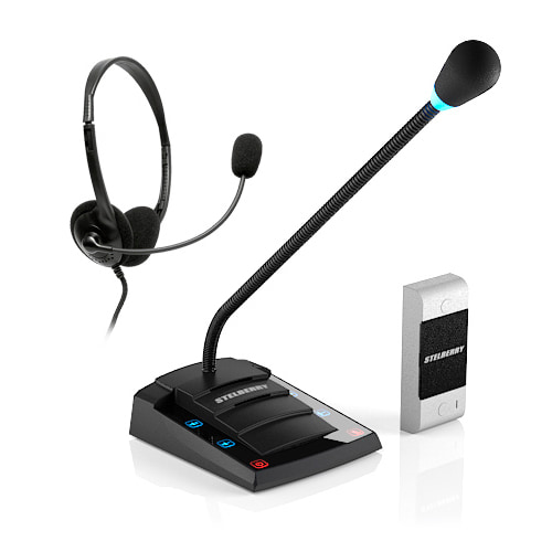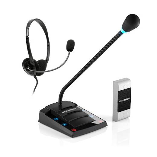 Stelberry S-402 – дуплексное переговорное устройство "клиент-кассир" с возможностью подключения гарнитуры (в комплекте) и выходом для записи переговоров.