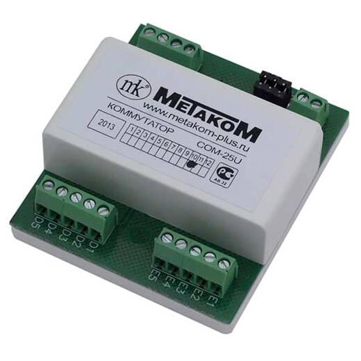 Гаджеты COM-25U – коммутатор координатный, предназначен для коммутации абонентских линий в домофонных системах на базе вызывных панелей МЕТАКОМ и рассчитан на подключение до 25-ти абонентов.