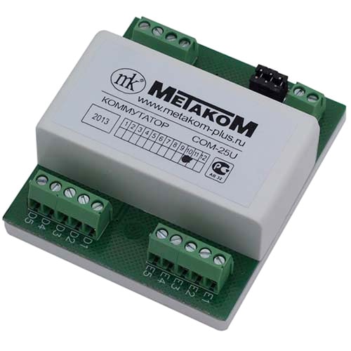 Гаджеты COM-25U – коммутатор координатный, предназначен для коммутации абонентских линий в домофонных системах на базе вызывных панелей МЕТАКОМ и рассчитан на подключение до 25-ти абонентов.