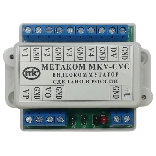MKV-CVC – видеокоммутатор сетевой, предназначен для коммутации видеосигнала в домофонных системах на базе блоков вызова MK2012, MK2018 для функционального расширения системы "калитка-подъезд" и рассчитаны на работу под управлением сетевых коммутаторов COM-NET2(4) версия 2, COM-NET2018 версия 2 или аналогичных имеющих выход управления видеокоммутатором. Видеокоммутатор позволяет осуществить коммутацию видеосигнала от 4 блоков вызова МК2012 (MK2018 или других совместимых производства МЕТАКОМ) к одной подъездной видеолинии.
