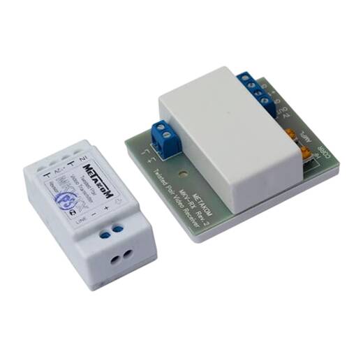 MKV-комплект – видеоусилитель, предназначен для использования в системах видеонаблюдения при передаче сигнала от видеокамеры или другого источника стандартного видеосигнала по витой паре проводов на расстояние до 1500 м к потребителю (монитору, пульту, видеомагнитофону и т.д.). Комплект обеспечивает возможность использования свободных витых пар в существующих компьютерных и телефонных линиях связи. Устройства комплекта имеют согласованное входное и выходное сопротивление, что исключает искажение изображения при передаче.