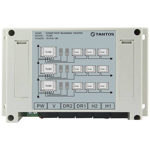 TS-NH– коммутатор двух вызывных панелей с возможностью каскадного подключения для объединения подъездов в единую систему.