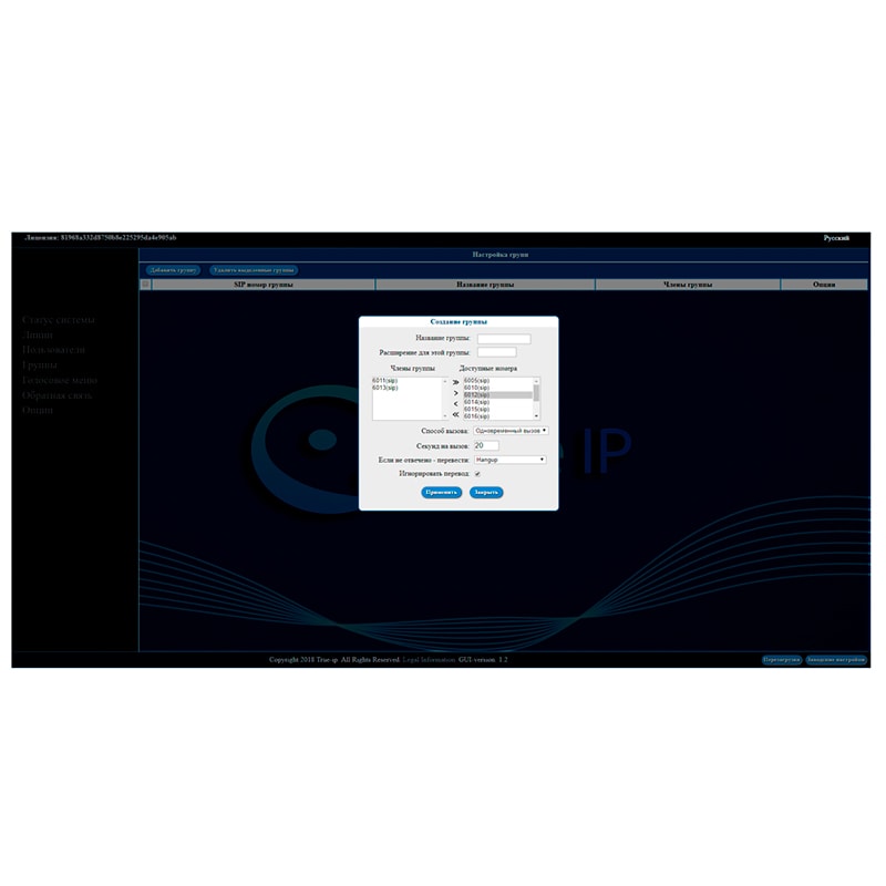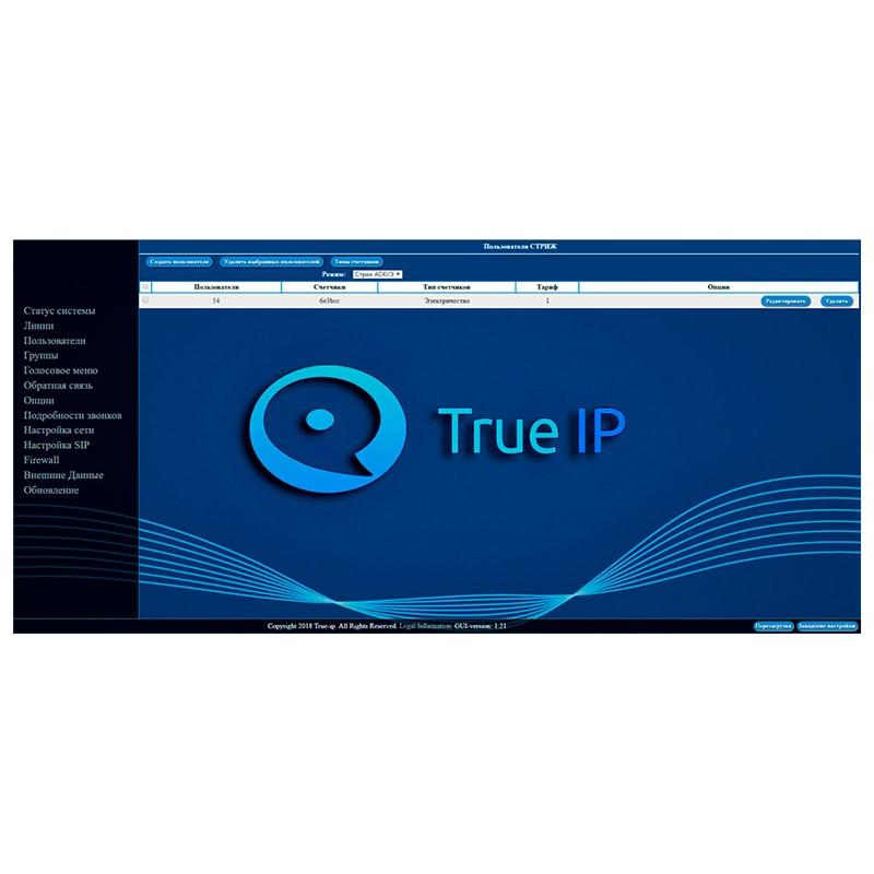 Основные характеристики True IP ПО SIP server True IP: