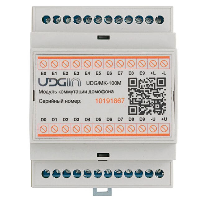 Гаджеты UDG/MK-100 – модуль коммутации емкостью до 100 абонентов. Предназначен для подключения координатных абонентских устройств к подъездной линии связи домофонов UDGIN.