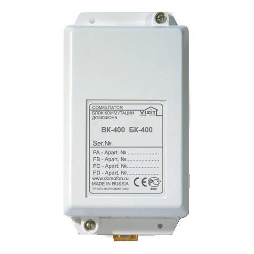 БК-400 – блок коммутации домофона, предназначен для подключения абонентских устройств к подъездной линии связи домофонов VIZIT.