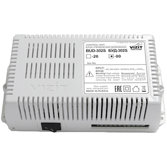 БУД-302S-80 – блок управления домофона, работает в комплекте с многоабонентскими блоками вызова (БВД) серии 300 как составная часть многоквартирных домофонов, видеодомофонов Vizit.