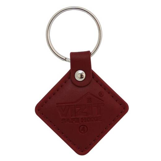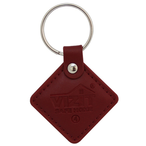 VIZIT-RF2.2 – бесконтактный Em-Marine брелок. Кожа с тиснением логотипа Vizit, 125 кГц пассивного типа, красный цвет.