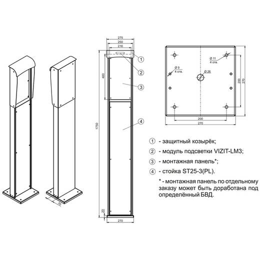 VIZIT-ST25-3PL – стойка домофонная для установки блока вызова домофона VIZIT или других торговых марок вне помещения.