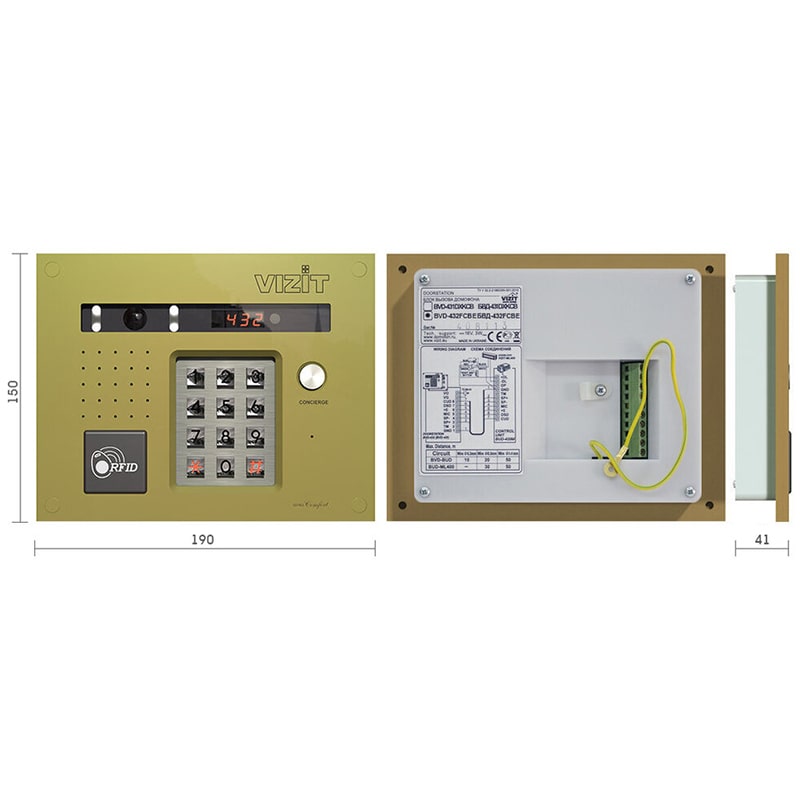 - встроенный считыватель ключей VIZIT-RF3;