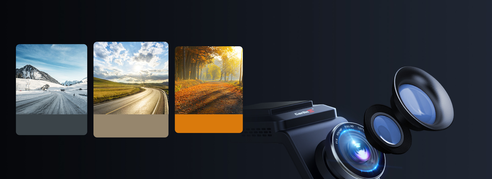 - Широкоугольного объектива 148° достаточно, чтобы охватить три полосы движения, что делает запись более информативной.