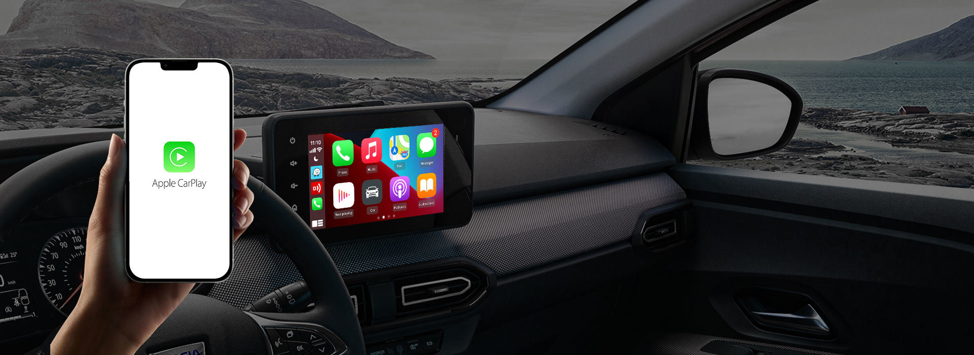- Поддержка голосового управления интерфейсом Apple CarPlay и Android Auto.