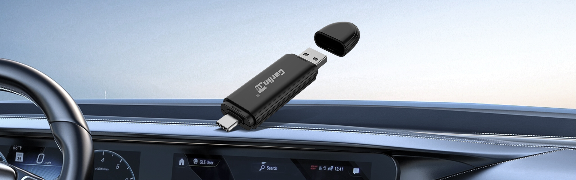 - Подключите устройство Carlinkit Mini SE Pro к USB (или Type-C) порту вашего автомобиля. Обратите внимание, что не все USB порты вашего автомобиля могут иметь поддержку проводного Apple Carplay/Android Auto. Убедитесь, что осуществляете подключение к нужному порту. В некоторых моделях авто данный USB порт может быть промаркирован символом смартфона или обведен в прямоугольник.