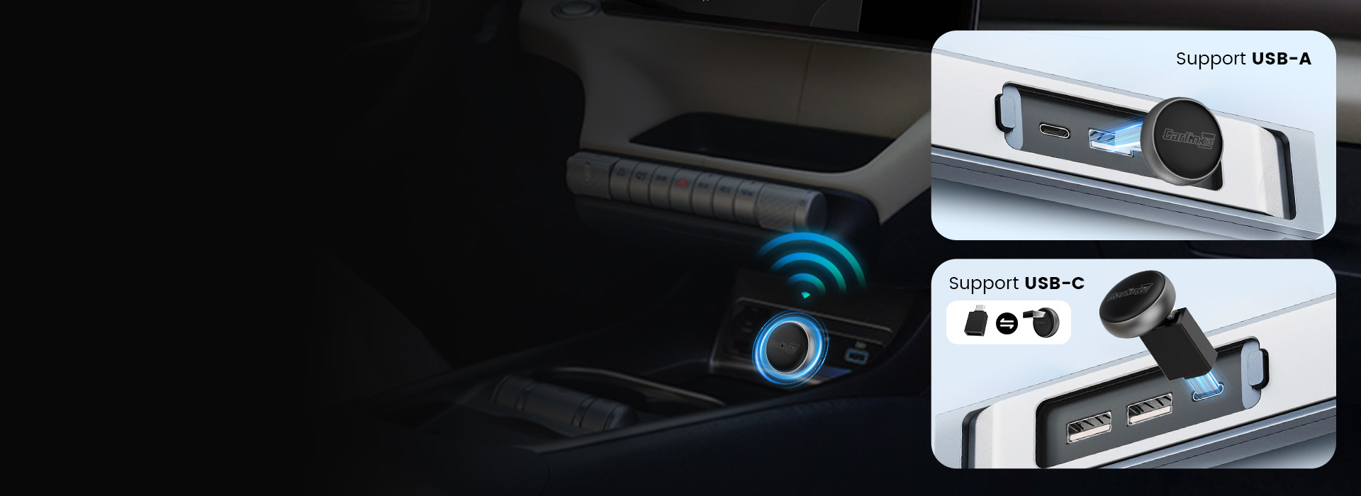 Если вы хотите при посадке в автомобиль не доставать телефон из кармана, и при этом пользоваться всем функционалом, который предоставляет Apple Carplay/Android Auto на головном устройстве, то для этого есть отличное решение - Carlinkit Mini Ultra. Этот небольшой гаджет подключается к USB-A или Type-C разъему (переходник в комплекте) вашего автомобиля. После чего достаточно один раз при первоначальной настройке подключить ваш телефон на iPhone или на Android к адаптеру по Bluetooth, и вы будете пользоваться всеми функциями CarPlay без провода «из кармана» при посадке в автомобиль: легко воспроизводить музыку, пользоваться навигацией или использовать голосовой помощник Siri и пр. Carlinkit сам подключится к вашему телефону и соединит его с головным устройством буквально в считанные секунды, как только вы окажетесь в автомобиле.