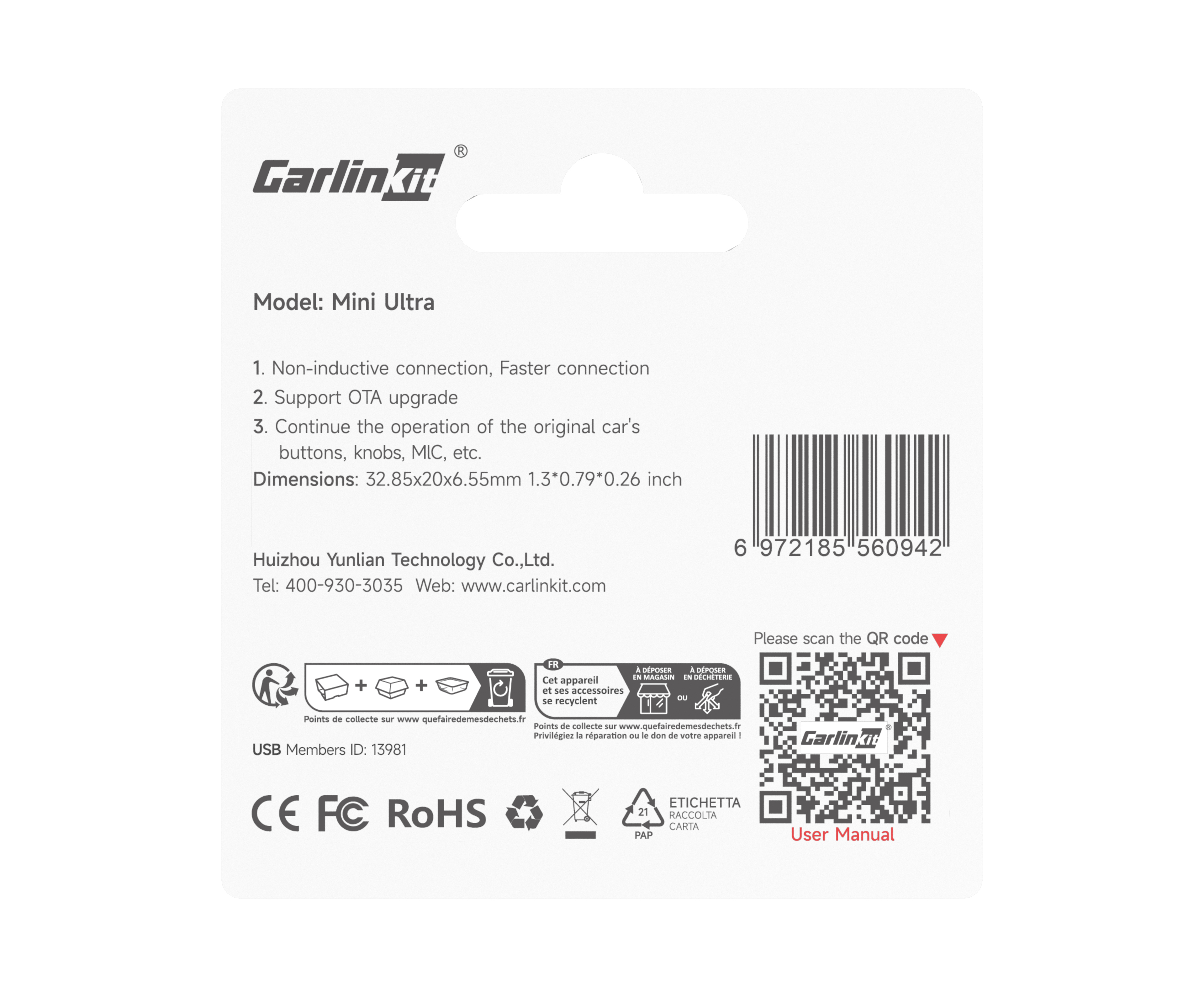 Carlinkit Mini Ultra - это адаптер для беспроводного подключения iPhone/Android к головному устройству автомобиля, поддерживающему интерфейс Apple CarPlay или Android Auto.
