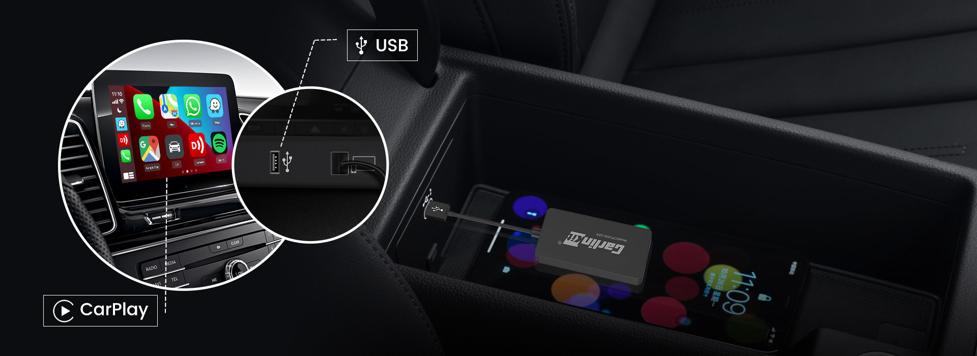 Carlinkit U2W - это компактный USB-адаптер, который позволяет получить полноценный беспроводной Apple CarPlay без необходимости подключать телефон iPhone по кабелю в USB гнездо вашего автомобиля.