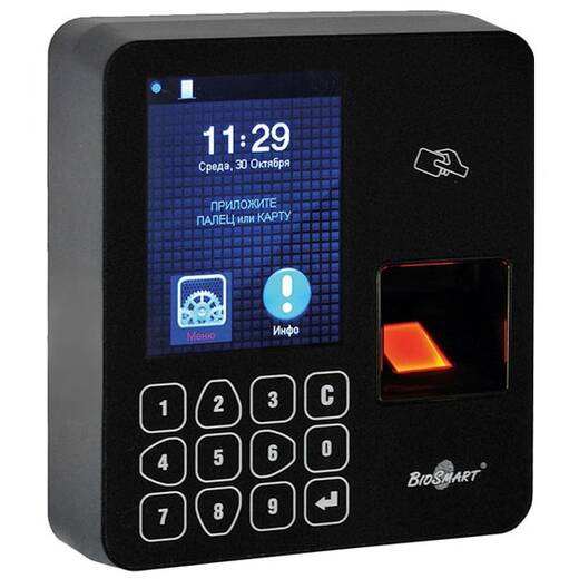 BioSmart-WTC2 – терминал для учета рабочего времени сотрудников на предприятиях посредством идентификации по отпечаткам пальцев и RFID картам. Позволяет управлять замком, турникетом (в одну сторону), другими исполнительными устройствами.
