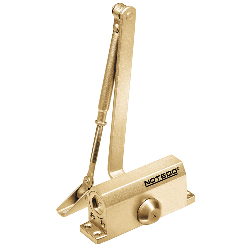 Notedo DC-040 – дверной доводчик золотого цвета, механогидравлический, двухскоростной.