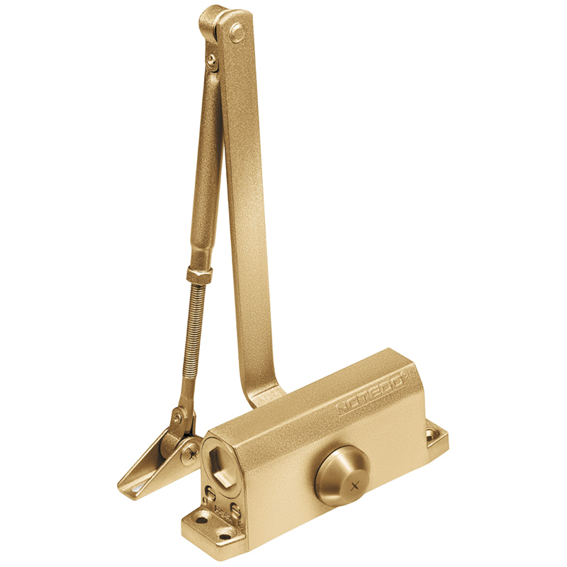 Notedo DC-060 – дверной доводчик золотого цвета, механогидравлический, двухскоростной.
