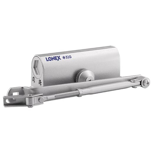 310 LONEX (серебро) – дверной доводчик, предназначен для установки на двери от 15 до 60 килограммов. Сертифицирован для установки на противопожарные двери.