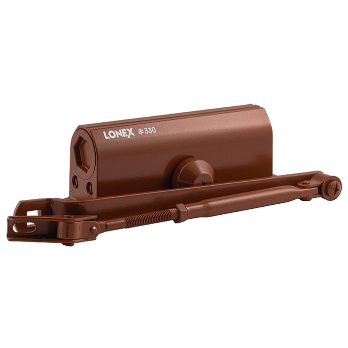 330 LONEX (коричневый) – дверной доводчик, предназначен для установки на двери от 50 до 120 килограммов. Сертифицирован для установки на противопожарные двери.