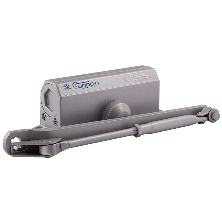 Модель с большим рычагом – доводчик для противопожарных дверей. Он имеет сертификат соответствия требованиям ГОСТ Р 56177-2014 и рекомендован для установки на противопожарные/противодымные двери.