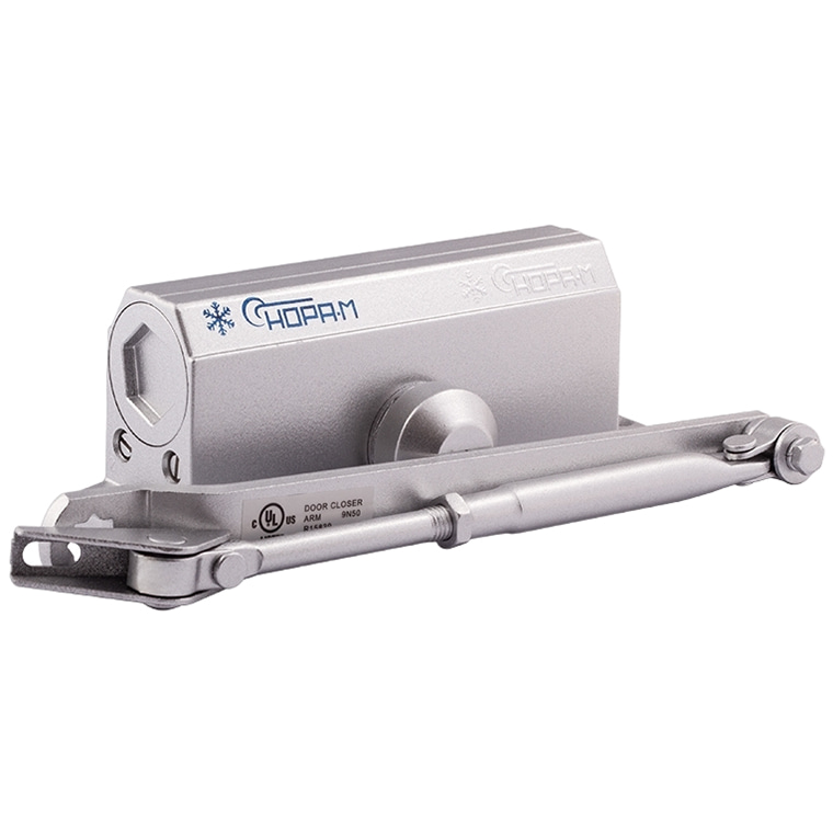 Нора-М 3S мал – универсальный по типу установки дверной доводчик с малым рычагом. Механизм устанавливается на двери, сделанные из дерева, пластика, металла и других материалов. Рекомендуется для дверей, не требующих открывания на 180˚ (например, в тех случаях, когда открывание ограничено стеной). Для увеличения угла открывания двери до 180˚ корпус доводчика крепится на короб двери с противоположной стороны от петель.