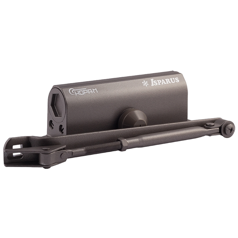 420 ISPARUS (графит) – дверной доводчик, предназначен для установки на двери от 40 до 90 килограммов. Сертифицирован для установки на противопожарные двери.