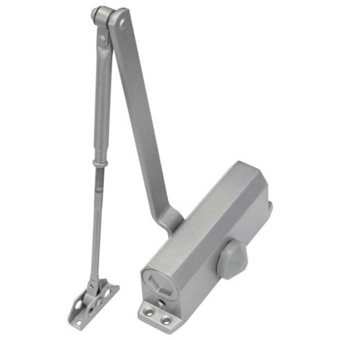 ST-DC236BC-SL – универсальный механический уличный дверной доводчик с настройкой скорости закрытия и торможения двери. Благодаря наличию регулировки усилия встроенной пружины в пределах 18-54 Нм, доводчик можно устанавливать на створки шириной 950-1400 мм и весом от 60 до 120 кг. Силуминовый корпус обеспечивает защиту от коррозии, а усиленные дверные тяги повышают механическую прочность всего механизма.