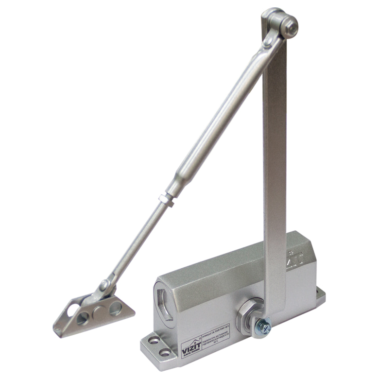 VIZIT-DC505S ARCTIC – внутренний накладной доводчик для двери весом 120 кг, рычаг с квадратным отверстием. Температура застывания гидравлической жидкости -51°С. Служит для принудительного закрывания двери и обеспечивает надежную работу электрозамков. Доводчик использует гидравлическое демпфирование для достижения плавности хода. Скорость хода регулируется.