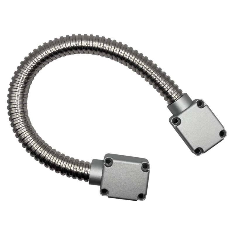 HN-402 – дверной переходник накладного монтажа увеличенного диаметра, используется, когда необходимо подвести пучок кабелей к устройству на дверном полотне, калитке или воротах. Изготовлен из цинкового сплава и аллюминия, покрыт порошковой окраской.