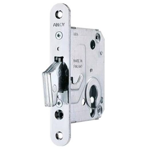 Abloy 4232 – замок повышенной надежности без нажимных ручек, для деревянных и металлических входных дверей под евроцилиндр стандарта DIN, без автозапирания, отпирающийся при помощи ключа или поворотной кнопки евроцилиндра.