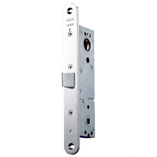 Abloy LC303 – левосторонний механический врезной замок-защелка для дверей из алюминиевого профиля, предназначен для использования только с нажимными ручками.