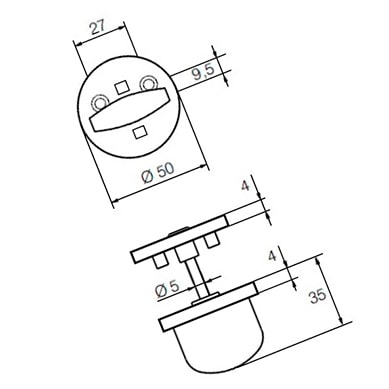 LH007 WC – поворотная кнопка из латуни скандинавского стандарта, предназначенная для запирания ванных комнат, туалетов и общественных помещений изнутри, с наружной стороны расположена индикация открыто/закрыто.
