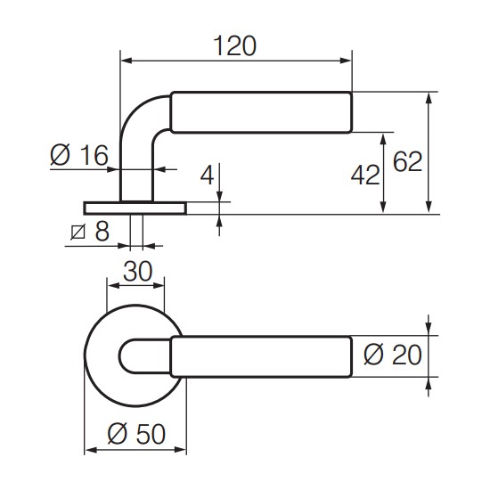 Парламент 2/007 – комплект нажимных ручек из латуни скандинавского стандарта с возвратной пружиной для сплошных дверей толщиной 40 мм.