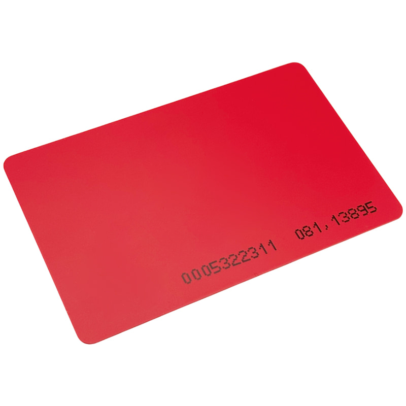 TK4100 RED ISO Card – тонкая карта стандарта Em-Marine красного цвета (арт. Hunter) для использования в системах контроля и управления доступом. На карту нанесен её код, что облегчает её занесение в базу данных при отсутствии считывающих устройств. Яркий красный цвет позволяет легко сегментировать персонал по уровням доступа или визуально выделять владельцев таких карт.